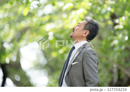 ビジネスマン ポートレート 新緑
