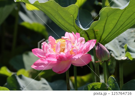 鮮やかなピンク色に包まれた大輪の蓮花