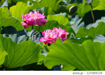 鮮やかなピンク色に包まれた大輪の蓮花ー参