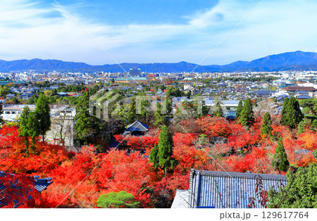 永観堂の紅葉と京都の街並み