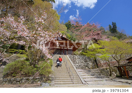 奈良県桜井市の談山神社の十三重塔と儀式殿と桜