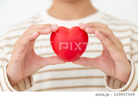 ハートを持つミドル女性の手