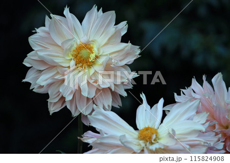 Golden Dahlias Against Deep Blue A Vibrant Floral Contrast