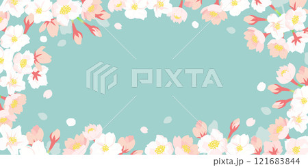 春の桜のフレーム背景 | フラットデザイン ( ベクター素材 コピースペース バナー )