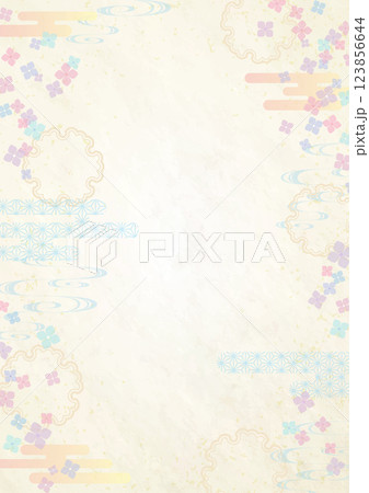 いろいろな模様の桜をあしらった和紙風背景イラスト
