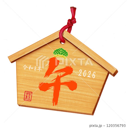 2026年午年、年賀状用パーツ(絵馬)