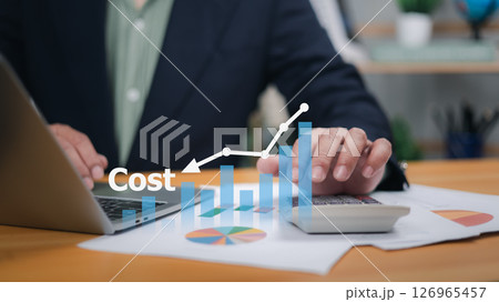 Businessman analyzing cost optimization and expense management with data analysis for budget planning and digital transformation, Modern finance, business strategies, operational efficiency.