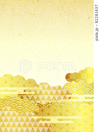 金箔風和柄雲の背景タテ