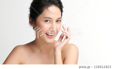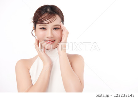 Beautiful young asian woman with clean fresh skin on white background, Face care, Facial treatment, Cosmetology, beauty and spa, Asian women portrait.