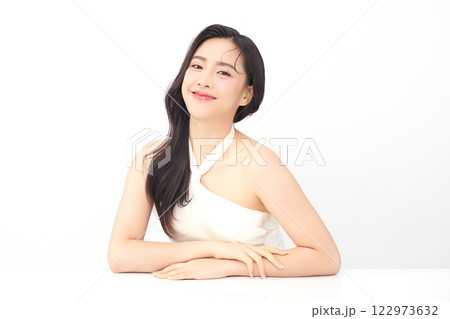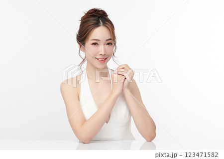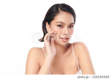 Beautiful young asian woman with clean fresh skin on white background, Face care, Facial treatment, Cosmetology, beauty and spa, Asian women portrait.