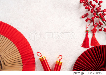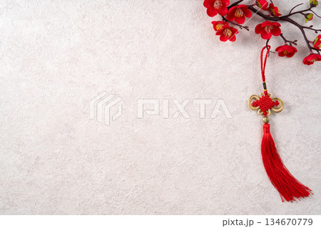 農曆新年 過年 春節 中國結 梅花 頂視圖 Chinese new year flat lay