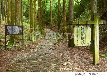 箱根町 箱根旧街道(旧東海道)案内板と石畳