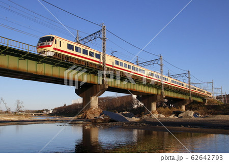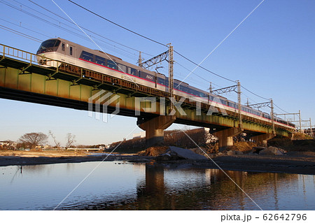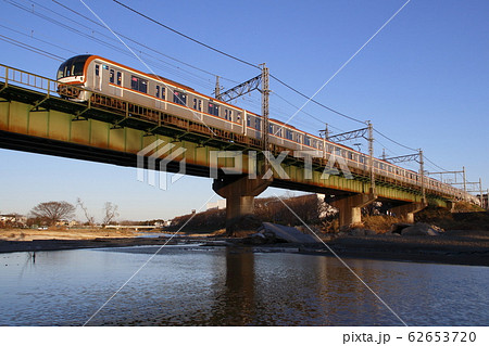 入間川橋梁を行く、西武池袋線特急(レッドアロークラシック)