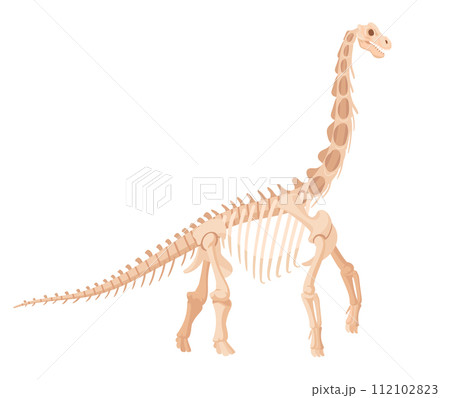 Diplodocus skeleton. Jurassic large herbivorous dinosaur, archaeological dino fossil bones. Plant eating dinosaur flat vector illustration. Ancient fossil skeleton
