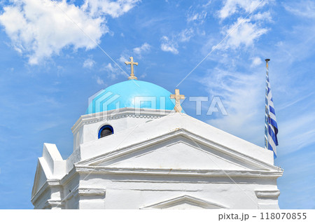 Myconos, views of the white houses with their cobbled streets. Village bathed by the South Aegean Sea, in the Cyclades, Greece