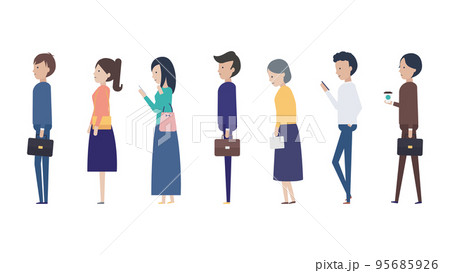 何の行列かわからなくても並ぶ日本人のイラスト素材