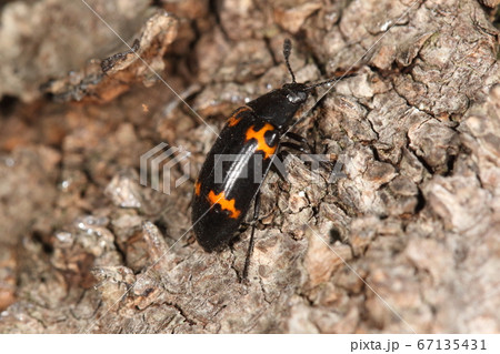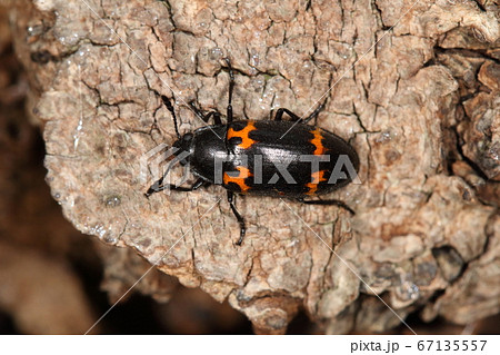 生き物 昆虫 ヒメオビオオキノコ、六月。サクラについたベッコウタケの群落に数頭いました