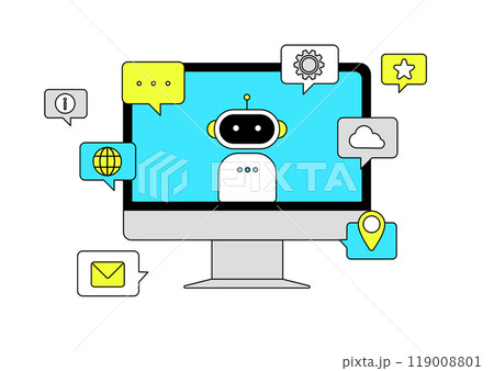 男性の問に解析した答えを会話で返す人型ロボット イラスト素材