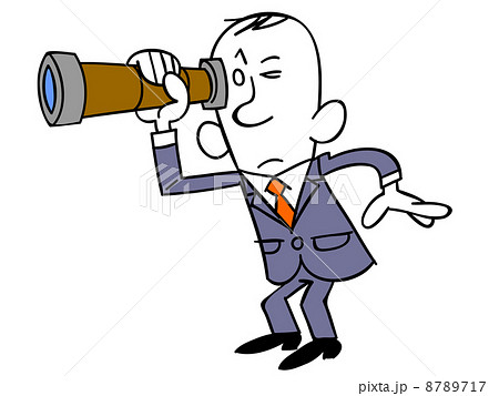 望遠鏡で遠くを見るサラリーマン
