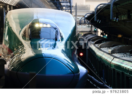 新幹線はやぶさの先頭車両 東京駅を出発する東北新幹線はやぶさ