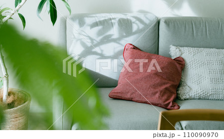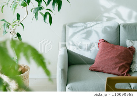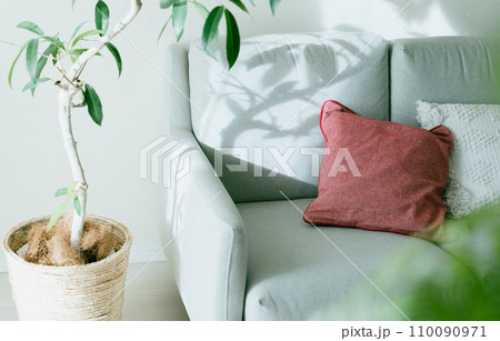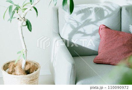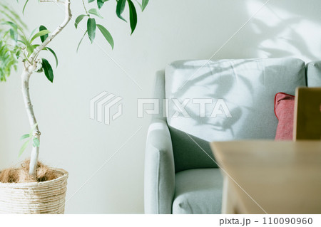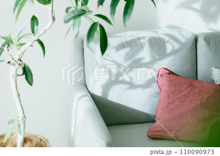 光が刺すソファと観葉植物
