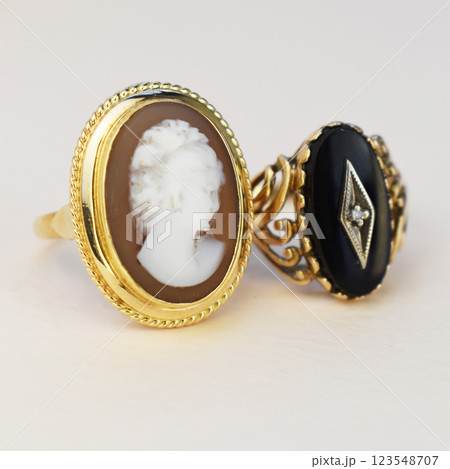 Statement ring for women on a white background, fine jewelry concept, promotional photo for an online vintage and handmade jewelry store