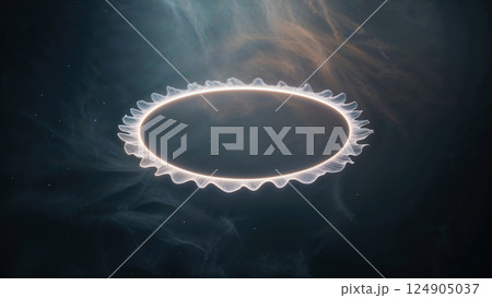 白い毛の生えたリングが光り輝く