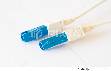 Close up of blue fiber optic cable
