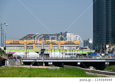 光州川から見る良洞市場の建物【韓国光州広域市】