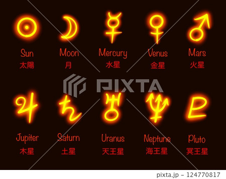 Colorful cosmic symbol with glowing outlines on dark background, astrological and celestial themes