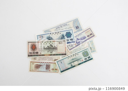 白い背景で撮った 少し古い世界のお金シリーズ 中華人民共和国 兌換券