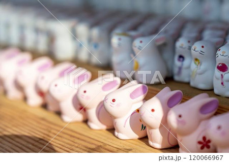 京都 岡崎神社 境内にずらっと並ぶ「うさぎみくじ」
