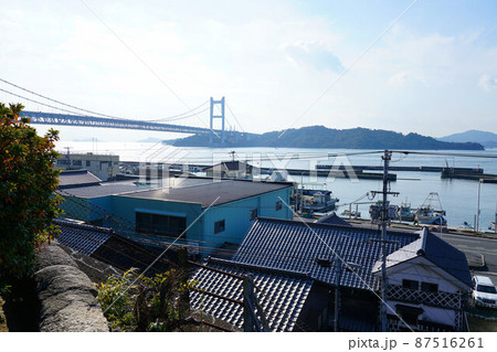 下津井観音寺から見た下津井の町並みと瀬戸大橋 岡山県倉敷市