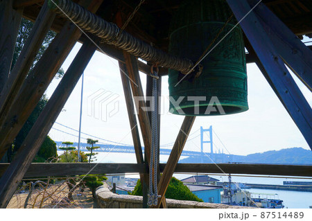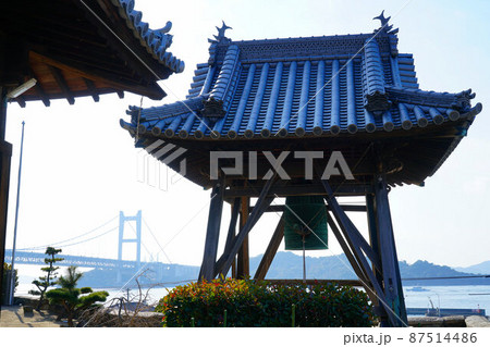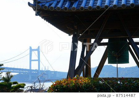 下津井観音寺の鐘楼越しの下津井瀬戸大橋2 岡山県倉敷市