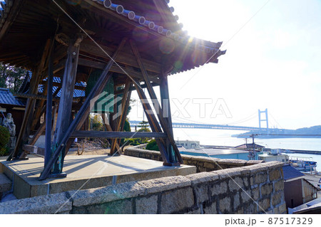下津井観音寺の鐘楼越しの下津井瀬戸大橋1 岡山県倉敷市