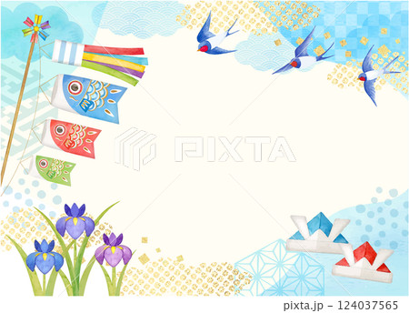 5月 こどもの日 イラスト素材 横長丸フレームセット