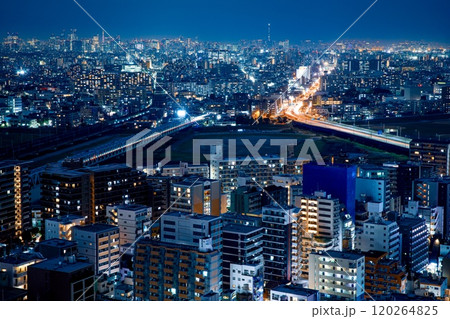 【夜景100選】川崎市、川崎市役所スカイデッキからの夜景(東京スカイツリー方面)
