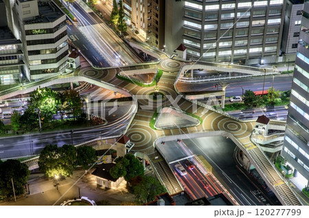 日本夜景遺産、東大阪市役所22階展望ロビーから眺める東大阪ジャンクションの夜景(クール系)