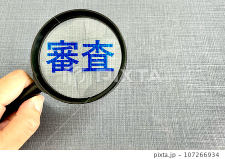 審査の文字と虫眼鏡と手 ビジネスの審査