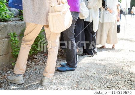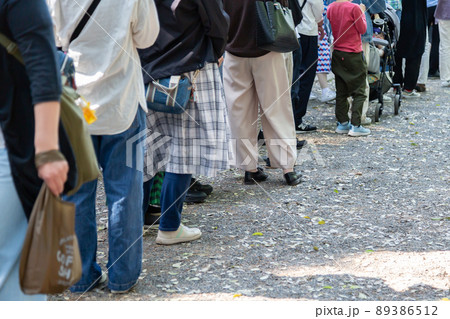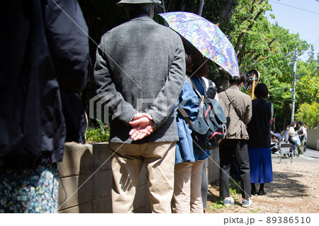 順番を待つ人々の行列 後ろ姿