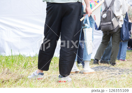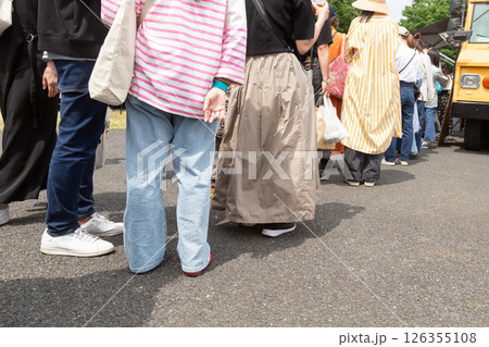 夏に行列に並ぶ女性達
