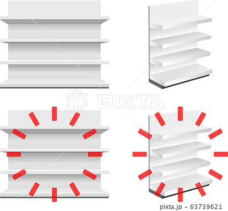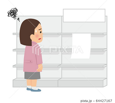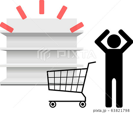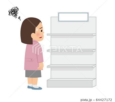 商品が無いスーパーの棚の前で困る人 ベクターイラスト