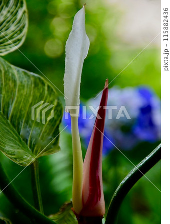 梅雨入りを待っているフィロデンドロンとアジサイ。