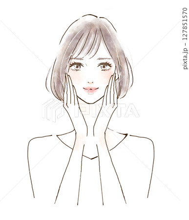 型頬に手を添える女性のイラスト 美容 スキンケア