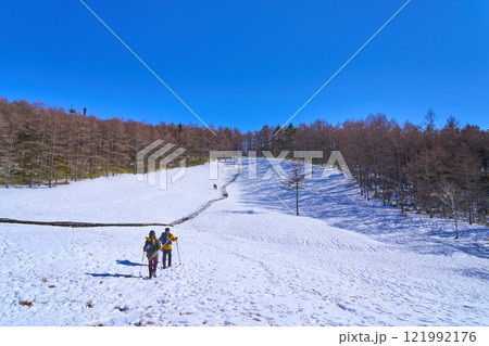 冬の長野県富士見町の入笠山湿原から南側方面を見上げる