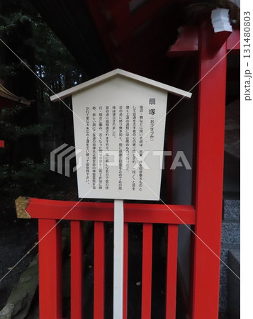 伊勢国一宮 猿田彦大本宮 椿大神社、鈴鹿山系の中央麓に鎮座する二千年の歴史を持つ神社、扇塚の立て札