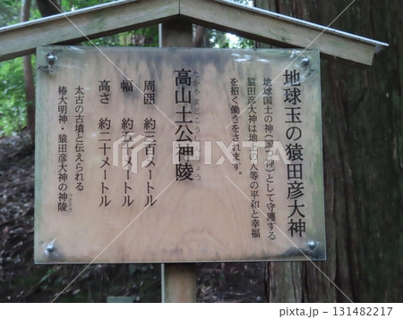 伊勢国一宮 猿田彦大本宮 椿大神社、高山土公神陵、地球玉の猿田彦大神の立て札