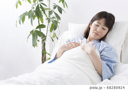 入院先のベッドに横たわる女性[病院]