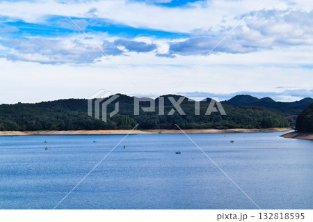 愛知県犬山市の入鹿池に浮かぶワカサギ釣りのボート