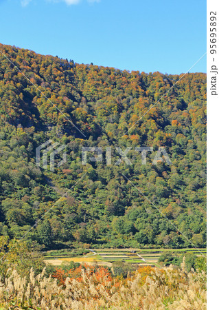 秋山郷の秋 東秋山林道から望む結東の石垣田